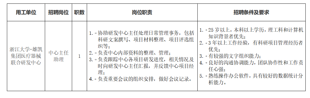 本单位拟公开招聘员工1名,派遣至浙江大学生仪学院从事浙江大学-雄凯集团医疗器械联合研发中心日常运营和管理。招聘坚持公开、公平、竞争、择优的原则,凡符合招聘岗位要求且有意向者,请将个人简历、毕业证书和学位证书扫描件以及其它证明本人能力、水平的相关资料发至md2035@zju.edu.cn。邮件主题注明:“应聘”。经资格审核后,再进行面试考核,择优录取。